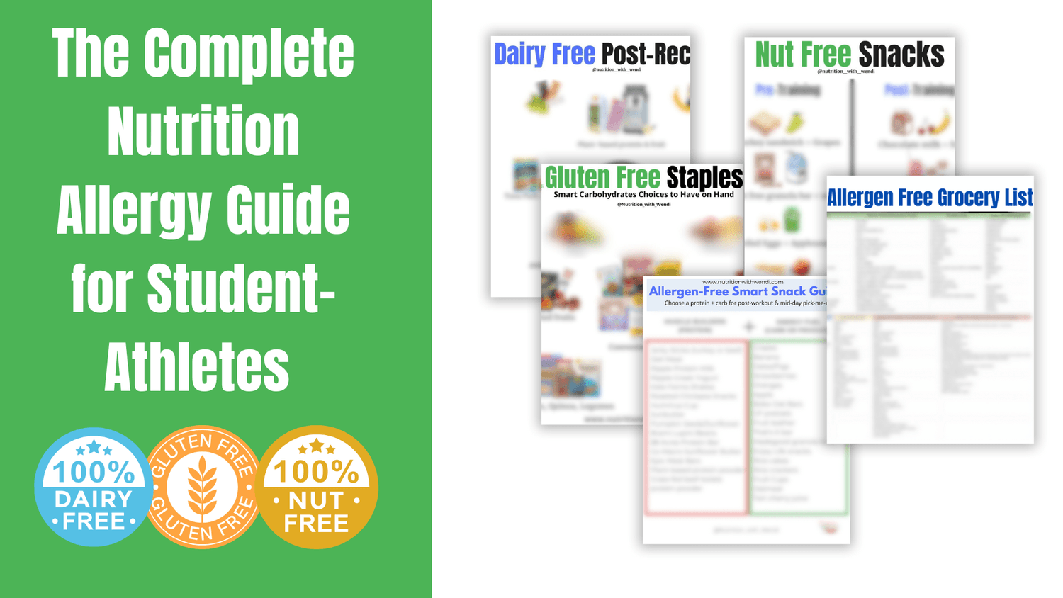 Top Allergen Free Grocery List (Protein, Whole Grains/Complex Carbs, Healthy Fats, Dairy Fortified Alternatives, Color (Fruit/Veggies), Pre-Training Carbs, Allergy-Free Athlete Carb Grab-N-Go Snacks)
