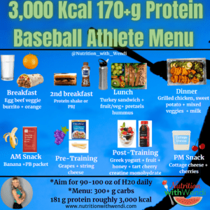 See my weight-gain blog tips here or pick up a copy of my weight-gain guide for guidance. Here’s a baseball athlete’s grocery list for easy grocery shopping!